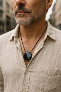 Balanční náhrdelník proti elektrosmogu Vortex HiFi Sigma 40 mm z černého vločkového obsidiánu využívá principy kvantové fyziky a pokročilé informační technologie Vortex Sigma k potlačení rušivých elektromagnetických polí (EMF), snížení stresu a podpoře hlubšího prožitku hudby. Nošený v úrovni srdce harmonizuje bioenergetická pole těla, přispívá k psychické pohodě a otevírá cestu k rovnováze mezi fyzickým tělem a duševní harmonií.