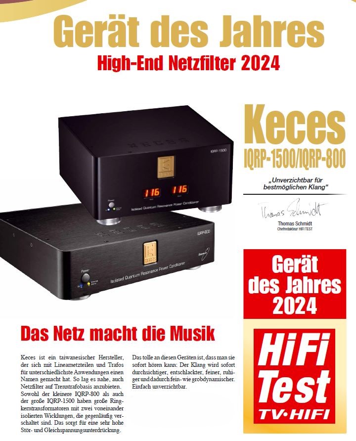 KECES Audio IQRP-1500 je špičkový napěťový kondicionér a filtr, navržený pro referenční systémy, kde čistota napájení rozhoduje o výsledném zvuku. Jeho konstrukce kombinuje izolovaný napájecí transformátor, technologii Quantum Resonance se Schumannovým rezonátorem, a nově navržené audiograde zásuvky a nožky. Výsledkem je mimořádně tichá a dynamická zvuková scéna, hluboký klid mezi tóny a precizní vykreslení prostorové informace.