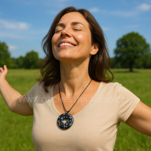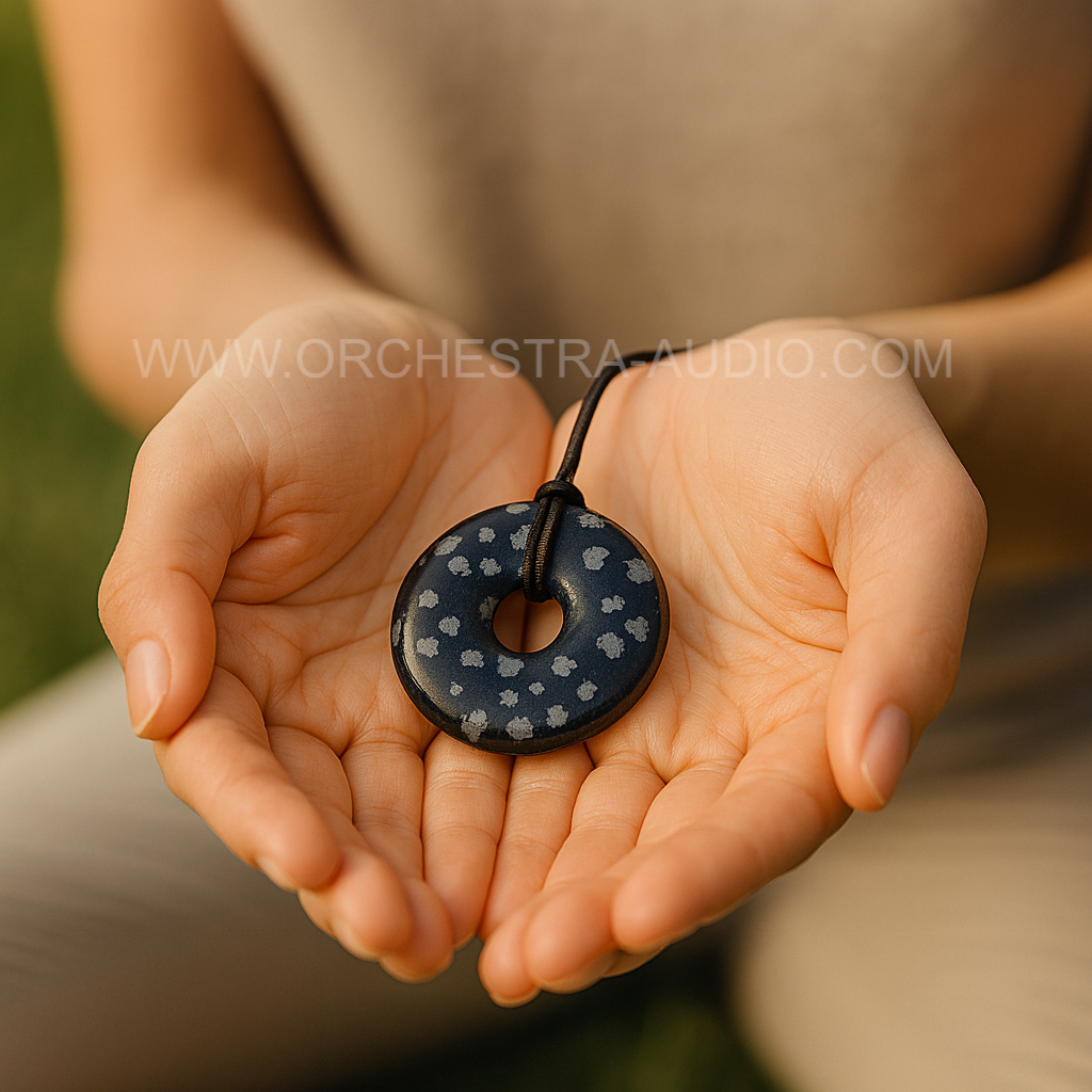 Donut je lehký, komfortní a hypoalergenní – stačí jej přiložit na kůži nebo zavěsit na krk a nosit bez omezení. Jeho síla spočívá v kombinaci obsidiánu a A.I.O. informace, která tvoří bipolární aktivní pole – harmonizační efekt bez nutnosti energie, baterií či údržby.